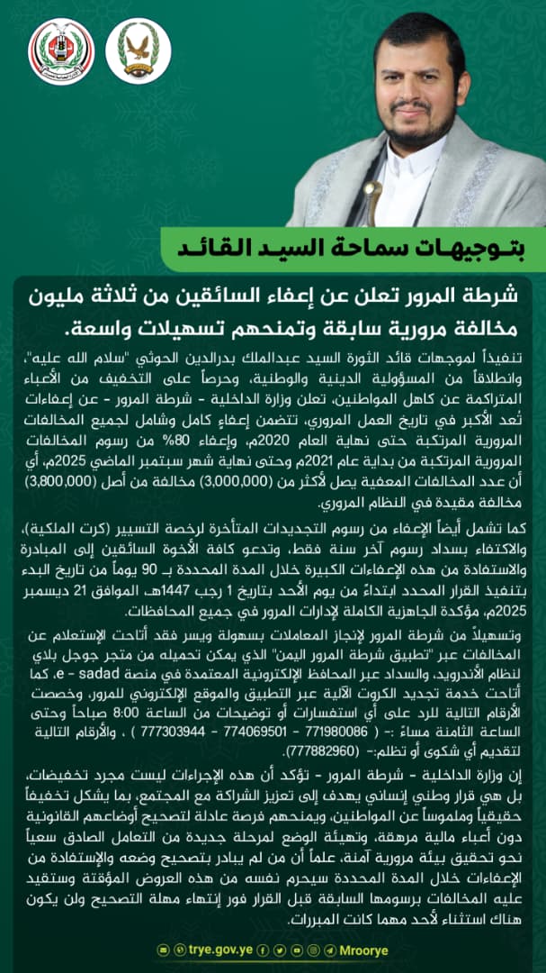 ينبه المركز الوطني للارصاد الجوية الاخوة المواطنين في المرتفعات الجبلية لمحافظات ( ذمار ،البيضاء ، صنعاء، عمران وصعده ) من الاجواء الباردة اثناء ساعات الليل والصباح والصباح الباكر .