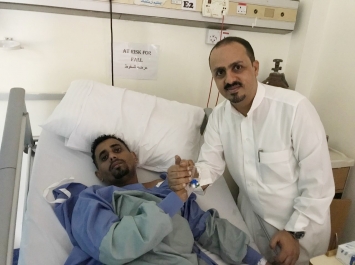 "صورة" وزير الاعلام يزور بطل مسلسل همي همك المصاب بجلطة دماغية والرئيس هادي يوجه بعلاجه