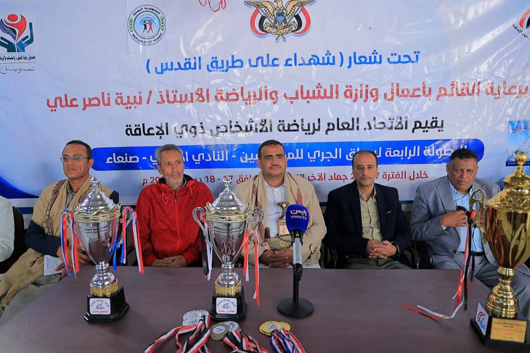من جانبه، استعرض رئيس الاتحاد العام لرياضة الأشخاص ذوي الإعاقة عبدربه ناصر حُميد مراحل الإعداد والتحضير للبطولة الرابعة للجري للمكفوفين، التي أُقيمت تحت شعار «شهداء على طريق القدس»، مؤكدًا أن البطولة حققت نجاحًا ملموسًا من حيث مستوى التنافس وتطبيق القواعد واللوائح الفنية المعتمدة للعبة، باعتبارها من الألعاب الدولية المعترف بها.