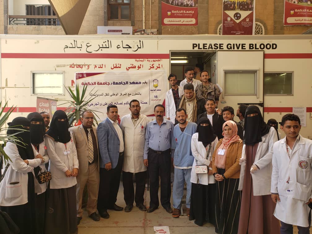 اختتمت اليوم بصنعاء الحملة السنوية الرابعة للتبرع بالدم الذي نظمتها في يومين جامعة الحكمة بالتعاون مع معهد الجامعة للعلوم الطبية " تحت شعار قطرة دم تنقذ حياة ".