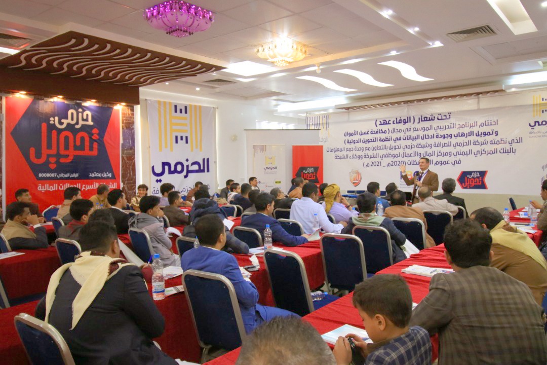 بحضور عدد من ممثلي البنوك والشركات المالية والمصرفية وتحت شعار الوفاء عهد اختتمت شركة الحزمي للصرافة وشبكة حزمي تحويل اليوم بأمانة العاصمة فعاليات البرنامج التدريبي الموسع في مجال مكافحة غسل الأموال وتمويل الإرهاب وجودة إدخال البيانات في انظمة التحويلات الدولية لوكلاء شبكة حزمي تحويل من منشآت الصرافة والذي نفذتة الشركة بالتعاون مع وحدة جمع المعلومات المالية بالبنك المركزي اليمني ومركز المال والأعمال في محافظات الجمهورية للعام (2020 -2021م .