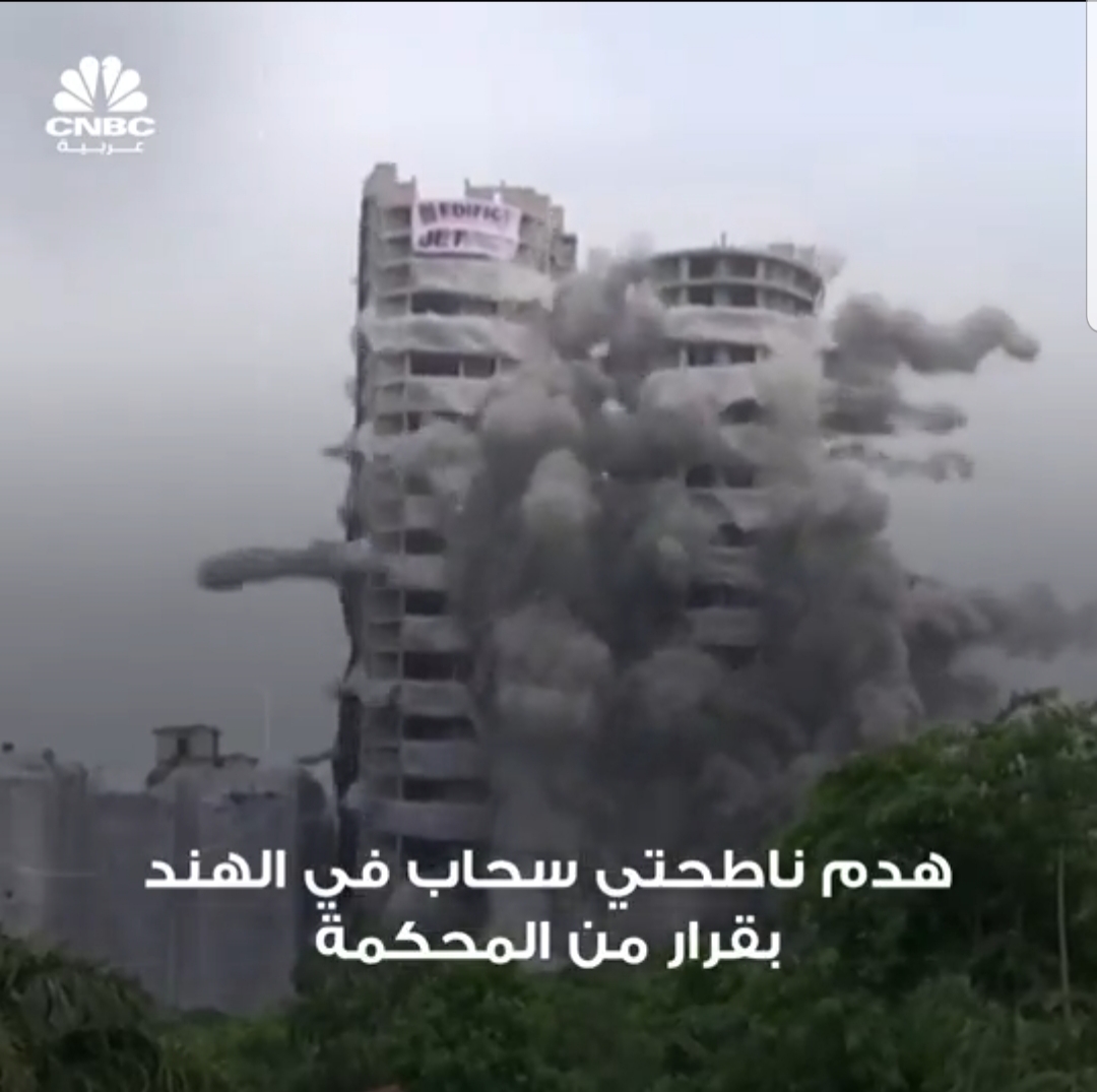 هدمت السلطات الهندية ناطحتي سحاب شيدتا خلافاً للقانون، الأحد، الـ28 من أغسطس (آب)، بالقرب من العاصمة نيودلهي، لتصبحا بذلك أطول مبنيين يهدمان على الإطلاق في البلاد في أقل من عشر ثوانٍ.
