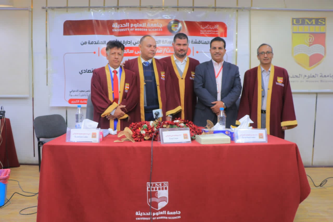 نال الباحث ماجد يحيى سالم عزان، اليوم درجة الماجستير بإمتياز في إدارة الأعمال من كلية العلوم الإدارية والإنسانية بجامعة العلوم الحديثة عن رسالته الموسومة بـ " دور التخطيط الاستراتيجي في تنمية مشاريع التمكين الاقتصادي في الهيئة العامة لرعاية الشهداء".