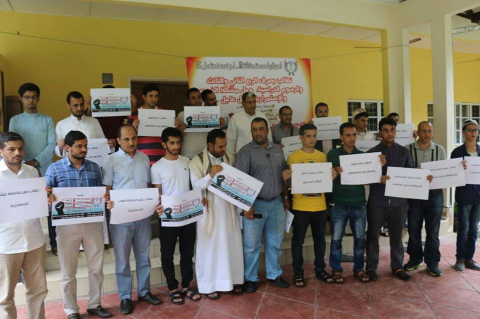 أقام اتحاد الطلبة اليمنيين في ماليزيا اليوم الجمعة وقفة احتجاجية في مبني الملحقية الثقافية في كوالالمبور وذلك لمطالبة الحكومية الشرعية باستحقاقات الربع الثاني والثالث من العام 2017 وكذلك الرسوم الدراسية، وحل مشاكل الخريجين وطلاب الاستمرارية.