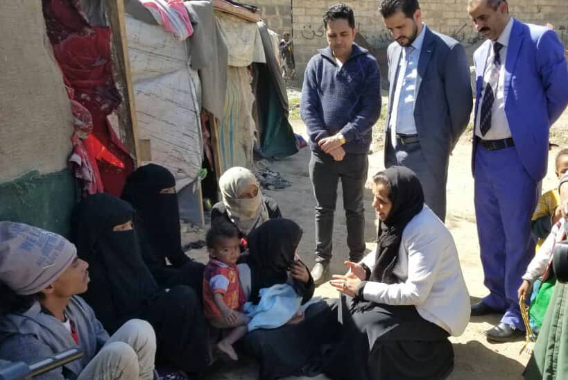 وخلال الزيارة التقت الوزيرة النازحين في المخيم مطلعة على اوضاعهم المعيشية مستمعة الى معاناتهم وعدم وجود أي منظمات داعمة للمخيم ، والحياة المعيشية الصعبة التي يعيشونها في ظل عدم وجود الغذاء والدواء وما يحميهم من برد الشتاء القارص.